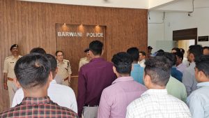 कार्यक्रम के दौरान पुलिस अधीक्षक बड़वानी श्री पद्मविलोचन शुक्ल, अतिरिक्त पुलिस अधीक्षक श्री धीरज बब्बर एवं उप पुलिस अधीक्षक महिला सुरक्षा श्री महेश सुनैया सहित कार्यालय के समस्त अधिकारी एवं कर्मचारियों द्वारा राष्ट्रगीत “वन्दे मातरम” एवं राष्ट्रगान “जन-गण-मन” का सामूहिक रूप से गायन किया गया। कार्यक्रम गरिमामय एवं अनुशासित वातावरण में संपन्न हुआ तथा उपस्थित सभी अधिकारियों एवं कर्मचारियों द्वारा राष्ट्र के प्रति अपने कर्तव्यों के निर्वहन हेतु प्रतिबद्धता व्यक्त की गई।